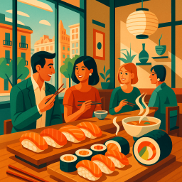 * ピーターは友達と一緒にArko Sushi Restaurant Barcelonaでディナーを楽しめます!