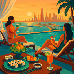 * ピーターは友達と一緒にAURA SKYPOOL Dubai دبيでディナーを楽しめます!