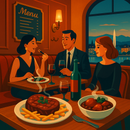 * ピーターは友達と一緒にBistrot du Bœuf Rouge Genèveでディナーを楽しめます!