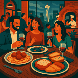 * ピーターは友達と一緒にCarmine's - 5th Avenue Seattleでディナーを楽しめます!