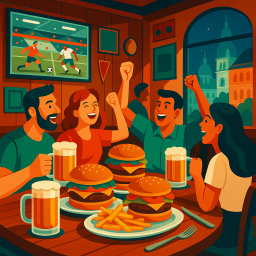 * ピーターは友達と一緒にChampions Sports Bar & Restaurant Wienでディナーを楽しめます!