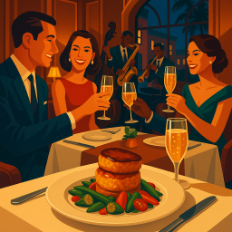 たとえば、ピーターが素晴らしい朝を過ごし、その日の午後6時に友人3人をCharleston Grill Charlestonへ連れて行くことを決めたとします。
