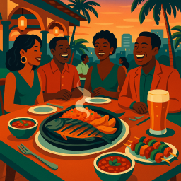 * ピーターは友達と一緒にChez Amis Bar and Grill Accraでディナーを楽しめます!