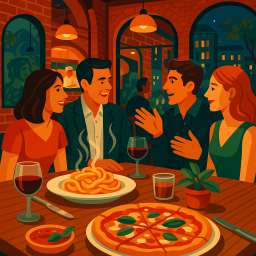 * ピーターは友達と一緒にComune Columbusでディナーを楽しめます!
