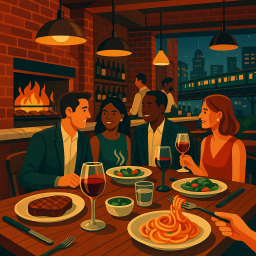 * ピーターは友達と一緒にDēliz Italian Steakhouse Chicagoでディナーを楽しめます!