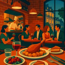 * ピーターは友達と一緒にFrenchie Parisでディナーを楽しめます!
