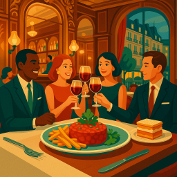 たとえば、ピーターが素晴らしい朝を過ごし、その日の午後6時に友人3人をGallopin Parisへ連れて行くことを決めたとします。