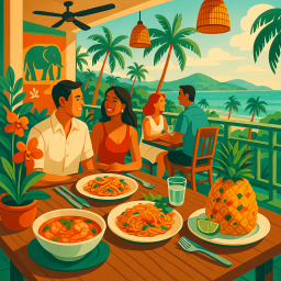 * ピーターは友達と一緒にKOH Thai Kitchen & Bar Tambon Ang Thongでディナーを楽しめます!