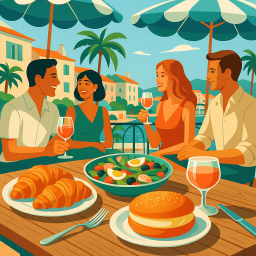 たとえば、ピーターが素晴らしい朝を過ごし、その日の午後6時に友人3人をLe café Saint-Tropezへ連れて行くことを決めたとします。