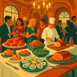 たとえば、ピーターが素晴らしい朝を過ごし、その日の午後6時に友人3人をLe Grand Buffet Saint-Bonnet-de-Mureへ連れて行くことを決めたとします。