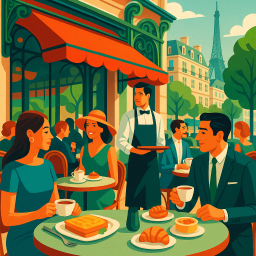 たとえば、ピーターが素晴らしい朝を過ごし、その日の午後6時に友人3人をLe Grand Café Parisへ連れて行くことを決めたとします。