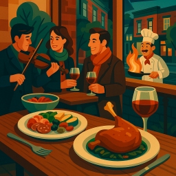 * ピーターは友達と一緒にLe Violon Montréalでディナーを楽しめます!