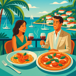 * ピーターは友達と一緒にL'Isola Gustaviaでディナーを楽しめます!