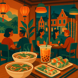 * ピーターは友達と一緒にLittle Vietnam (Vietnamese specialiteiten & Bubble Tea) Sittardでディナーを楽しめます!