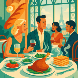たとえば、ピーターが素晴らしい朝を過ごし、その日の午後6時に友人3人をMadame Brasserie - Tour Eiffel Parisへ連れて行くことを決めたとします。