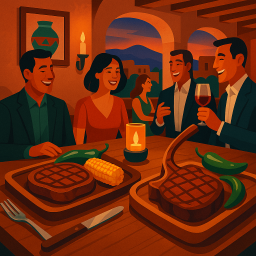 * ピーターは友達と一緒にMarket Steer Steakhouse Santa Feでディナーを楽しめます!
