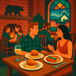* ピーターは友達と一緒にMaude & the Bear Stauntonでディナーを楽しめます!