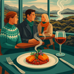 * ピーターは友達と一緒にMoss Restaurant Grindavíkでディナーを楽しめます!