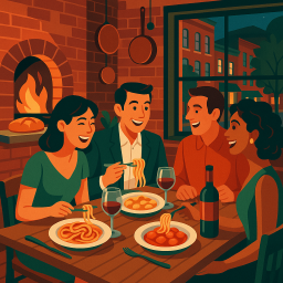 たとえば、ピーターが素晴らしい朝を過ごし、その日の午後6時に友人3人をMothers & Sons Trattoria Durhamへ連れて行くことを決めたとします。
