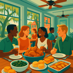 * ピーターは友達と一緒にMrs. Wilkes Dining Room Savannahでディナーを楽しめます!