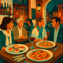 * ピーターは友達と一緒にOsteria alle Testiere Calle del Mondo Novo Veneziaでディナーを楽しめます!
