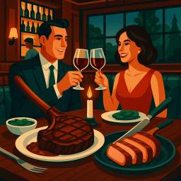 * ピーターは友達と一緒にPerry's Steakhouse & Grille - Raleighでディナーを楽しめます!