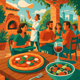 * ピーターは友達と一緒にPizza Jardin Alcobendasでディナーを楽しめます!