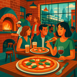 * ピーターは友達と一緒にPIZZ'AMICI Chicagoでディナーを楽しめます!