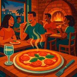たとえば、ピーターが素晴らしい朝を過ごし、その日の午後6時に友人3人をPizzaria San Nycollasへ連れて行くことを決めたとします。