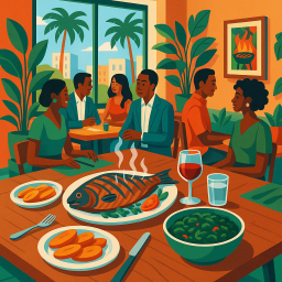 * ピーターは友達と一緒にRestaurant Diet Santé, Doualaでディナーを楽しめます!
