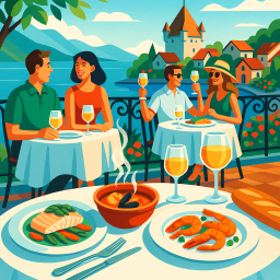 * ピーターは友達と一緒にRestaurant Le Jules Verne Yvoireでディナーを楽しめます!