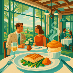 * ピーターは友達と一緒にRestaurant Troisgros - 'Le Bois sans Feuilles' Ouchesでディナーを楽しめます!