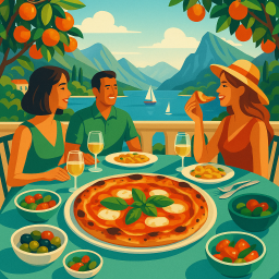 * ピーターは友達と一緒にRistorante Pizzeria Villa Aranci Riva del Gardaでディナーを楽しめます!