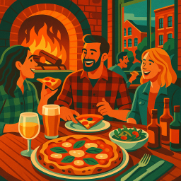 Food - great food, would definitely eat again Service - little slow, took 40 mins during Saturday dinner time for 1 pizza and app Ambiance - great for large gatherings
