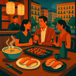 * ピーターは友達と一緒にsato i tanaka Barcelonaでディナーを楽しめます!