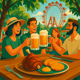It's a wonderful place located in the Prater, in the playground. We went for dinner, the place is huge, they have dozens of tables inside and outside. We waited about ten minutes for an empty table in the garden. The food is extremely delicious, the