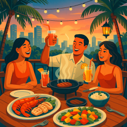 * ピーターは友達と一緒にSea Breeze Resort And Restaurant Taguigでディナーを楽しめます!