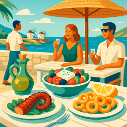 * ピーターは友達と一緒にSpilia Mykonos Seaside Restaurant Kalafatiでディナーを楽しめます!