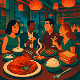 * ピーターは友達と一緒にStraits Restaurant Santa Claraでディナーを楽しめます!