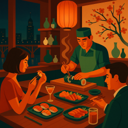 * ピーターは友達と一緒にSushi Kuwahata Clevelandでディナーを楽しめます!