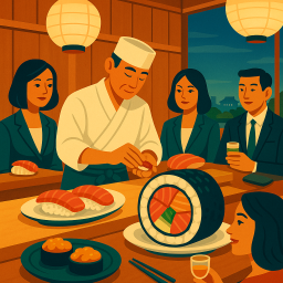* ピーターは友達と一緒にSushi Mizukami Chiyoda Cityでディナーを楽しめます!