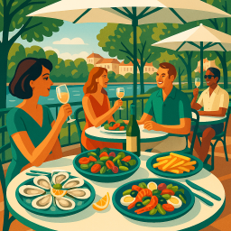 * ピーターは友達と一緒にTahiti Plage Vichyでディナーを楽しめます!