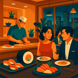 The food is amazing--the fish is incredibly fresh and flavorful. We did the omakase at the sushi counter, where the chef prepared each nigiri in front of us while explaining the fish, which made the experience unforgettable. It is a little pricey, bu
