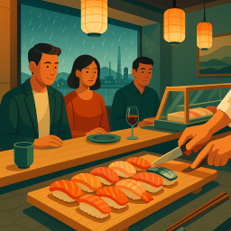 * ピーターは友達と一緒にTenzushi Kyomachi Kitakyushuでディナーを楽しめます!