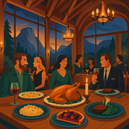 * ピーターは友達と一緒にThe Ahwahnee Dining Room Yosemite Valleyでディナーを楽しめます!