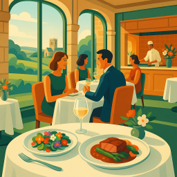 We enjoyed dinner in the Dining room over the Easter break as part of a weekend stay at the hotel. The food and service were great. The restaurant was very quiet with only a handful of covers all evening and a large portion of the room sectioned off