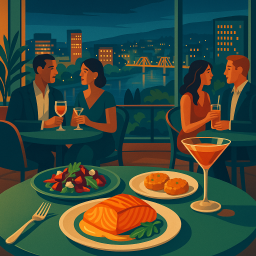 * ピーターは友達と一緒にThe Nines Portlandでディナーを楽しめます!