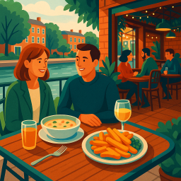 * ピーターは友達と一緒にThe River Cafe Dublin 5でディナーを楽しめます!