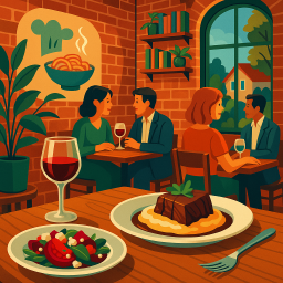* ピーターは友達と一緒にThyme Table Bay Villageでディナーを楽しめます!