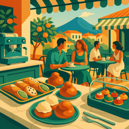 たとえば、ピーターが素晴らしい朝を過ごし、その日の午後6時に友人3人をTorrisi Bar Cataniaへ連れて行くことを決めたとします。